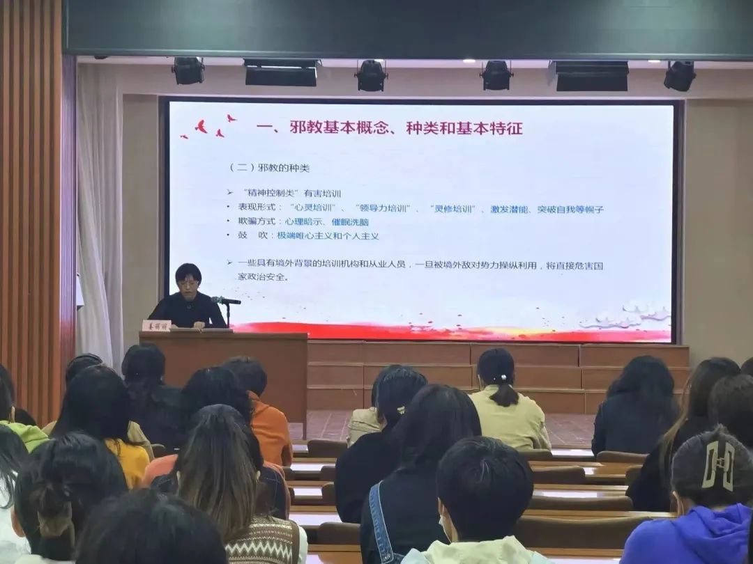 活动中威海市环翠区政法委副科级干部、市级教育转化专家姜丽丽主任通过理论讲解、案例分享等方式生动的讲解了邪教的模式、危害及防范方法。全市妇联干部、群众1000余人通过线上直播收看。
