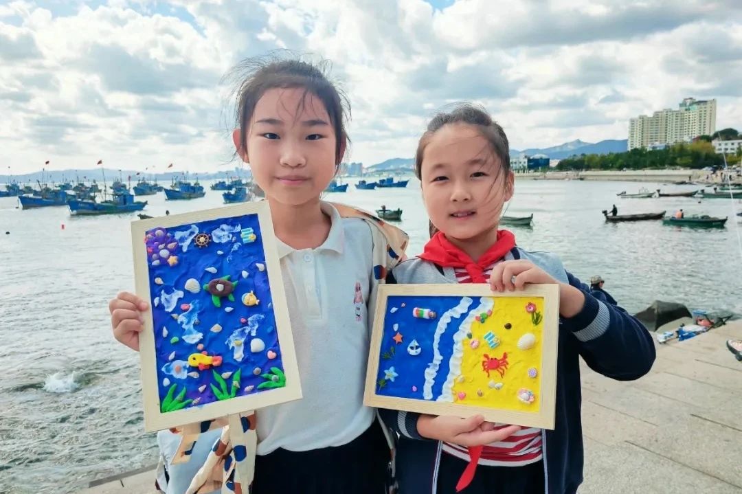 通过学习,小卫士们清晰地认识到海洋生态环境对人类如此重要,作为海滨城市的居民,保护海洋生态健康更是我们应尽的职责。最后的“我为海洋画幅画”环节,小卫士利用手作材料和从海边捡拾的贝壳等物料开始了创作,一幅幅画作留住了眼前的生态美景,也留下了他们保护海洋生态环境的承诺。