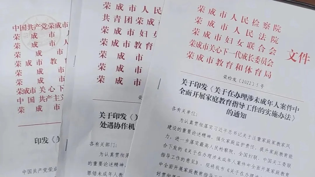 与公检法等部门协调联动,出台《关于建立罪错未成年人分级处遇协作机制的意见》《关于在办理涉未成年人案件中全面开展家庭教育指导工作的实施办法》等政策文件,对涉案未成年人及其父母开展家庭教育指导服务,促进涉案未成年人早日融入社会。