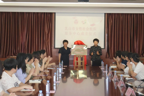 乳山市妇联党组书记、主席王雪光,乳山市民政局党组成员肖淑娟为乳山市女性社会组织服务中心揭牌。