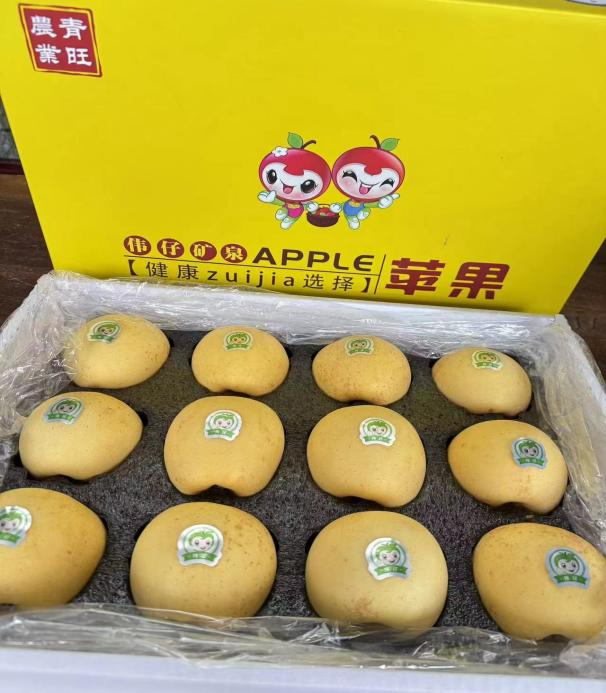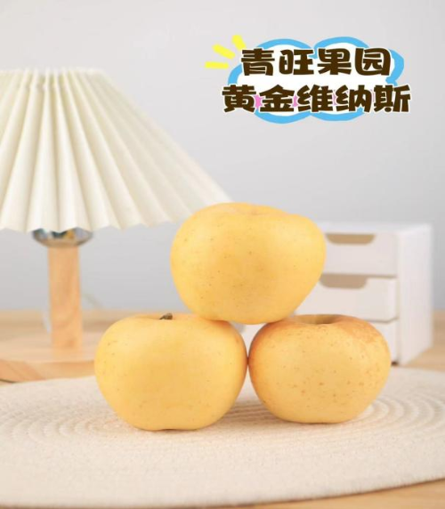 维纳斯黄金苹果是一种晚熟的苹果品种,源自日本后引入中国,金黄色的果皮,果型呈长圆型,外形周正,部分果顶有明显的凸起,果肉为淡黄色质地紧密,口感脆爽多汁、甜味浓郁并带有特殊的芳香气味,可溶性固形物含量在14.5-15.5之间,糖度平均在15度左右,最高可达17度,无酸味。当出现星点果斑时,口感和糖度会更好那更是美味的象征。这种苹果不仅好吃那么简单还富含多种维生素和矿物质,对我们的身体健康大有益处。