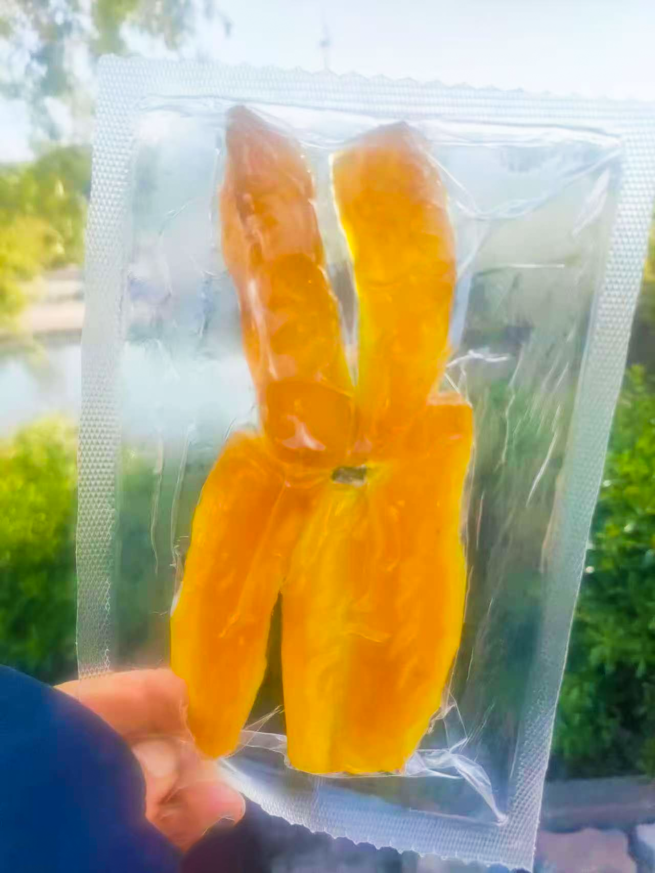 香薯一号引种于日本,属于晚熟品种,薯块长条形,甜度在35左右,鲜薯粉面香甜,糖化后甜度更高,软糯香甜无丝。香薯一号地瓜干用香薯一号地瓜制作,口感软糯香甜,没有任何添加,没有防腐剂,纯天然的需要冰箱里保存。