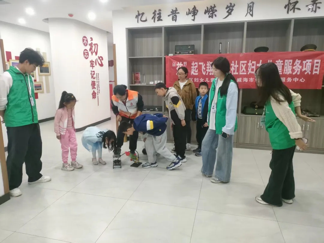 为丰富社区青少年的业余生活,增进邻里间的交流与互动,威海助力公益在环翠区妇联的支持下,在天翔社区举办了一场“饮料瓶变身‘飞天神器’”——空气火箭炮亲子科学派对。