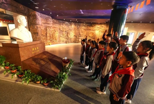 走进陈列馆,一张张泛黄的照片、一件件承载历史的实物,瞬间将同学们的思绪拉回那个艰苦奋斗的年代。在互动体验区,同学们通过多媒体设备,直观了解 “两弹一星” 研制过程中的艰辛与辉煌。大家轻声交流着感受,纷纷表示要学习郭永怀先生胸怀祖国、无私奉献的精神。参观结束时,全体同学在郭永怀先生的铜像前庄严敬礼,稚嫩的脸庞上写满坚定。