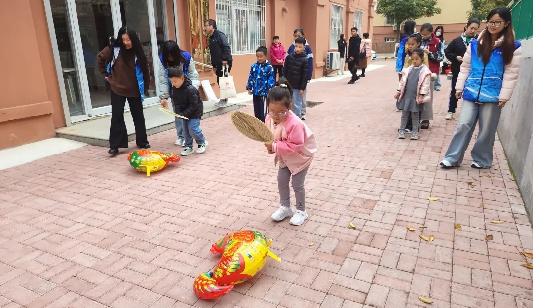 “赶鸡入笼”游戏将活动推向高潮。志愿者示范规则后,孩子们分为“闪电队”和“彩虹队”展开PK。两队成员齐心协力,在趣味比拼中展现策略与默契。风采展示环节中,孩子们喊出创意口号,自信满满的模样赢得阵阵掌声。