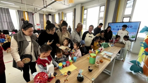 活动伊始,幼儿园老师以 “零碳守护家园” 为切入点,分享绘本《小山小水的奇妙旅行》。亲子手工环节成为活动的核心亮点。孩子和家长们从家里着废旧纸盒、塑料瓶、落叶等环保材料,充分发挥想象力与动手能力,将原本闲置的 “废品” 变身成一件件充满巧思的环保手作——有的将塑料瓶改造为小巧的多肉盆栽,有的将废旧纸盒搭建起“垃圾分类” 模型,还有的用落叶拼贴出了海底世界。亲子间默契配合,裁剪、粘贴、装饰有条不紊,活动现场欢声笑语不断,既增进了亲子情感,更让孩子们在实践中体会到 “资源循环利用” 的零碳理念。