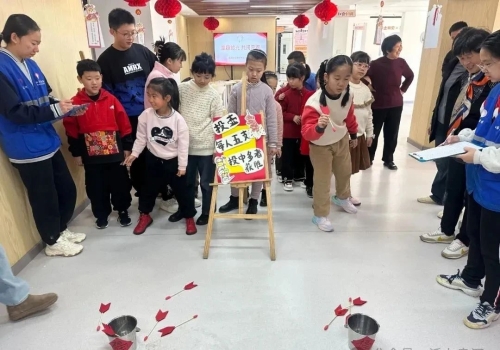 紧接着,孩子们在老师与志愿者的引导下小朋友们积极踊跃地参加了贴花灯、猜灯谜、画元宵、摇元宵、投壶等互动环节,每一次游戏的参与都凝聚着他们对节日的美好祝愿。