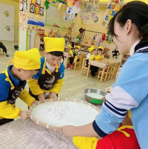 召文台社区联合金色摇篮幼儿园共同开展“知年俗寻年味 儿童喜乐滚元宵”活动,让幼儿园的小朋友们亲身体验元宵节习俗,感受正月十五滚元宵的美好寓意。活动中,在社区工作人员与幼儿园老师的带领下,孩子们将红豆、黑芝麻、花生等馅料搓成小球,放入盛放糯米粉的簸萝内,经过耐心细致地来回滚动,一个个圆滚滚的元宵就做好了,孩子们喜悦地拿着自己亲手制作的元宵,感受着喜庆的节日氛围。老师们也向孩子们讲述了元宵节的起源、习俗等传统故事,增加了他们对传统节日的了解和兴趣。