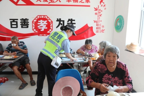 随后,民辅警走进二疃村“长者食堂“,以”食堂”为载体,把“知识”变佳肴,让老人们深刻认识到交通安全的重要性,切实将安全意识种进老人心里,为“银发族”筑起一道看得见、摸得着的温暖安全防线。