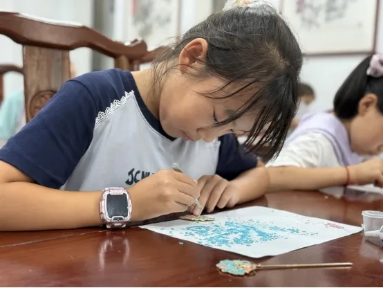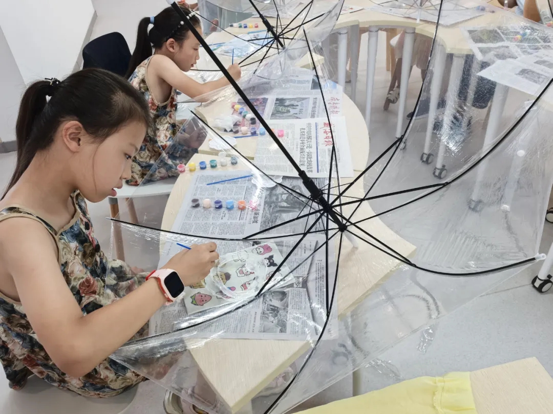 市图书馆: 古艺新思 码上未来 8月3日,威海市图书馆尼山书院第一期“古艺新思·码上未来”少儿夏令营圆满结营。在为期五天的课程中,200名中小学生通过“胶东面塑”“掐丝珐琅”“木雕”“螺钿”“人工智能与编程”“小小理财师”六大主题课程,在传统非遗技艺与现代科技思维的交融中,收获了知识、技能和自信。 时光荏苒,精彩继续。愿这段充满传承与智慧的旅程,化作孩子们心中永不熄灭的灯塔,照亮未来求知的道路。8月5日,威海市图书馆将继续以文为媒,以化为业,搭建成长的桥梁,期待与更多小朋友们在第二期的夏令营中再次相遇,共赴星辰大海的约定! 环翠区: 缤纷暑假 童享时光 蝉鸣渐起,热浪翻涌,为帮助辖区儿童度过一个有意义的暑假,张村镇妇联积极联动各方资源,以“儿童友好”为主线,开展了“缤纷暑假,童享时光”系列暑假趣味活动,从动手实践的奇妙探索到欢声笑语的互动游戏,从创意迸发的艺术课堂到安全感满满的应急护航,让儿童在艺术创作中享受生活,在收获知识的途中锻炼能力。 为丰富社区儿童假期生活,挖掘儿童的兴趣爱好,激发儿童的艺术创造力,让儿童在创作中收获快乐,皂河社区开展了“伞上生花 绘意社区”DIY涂鸦活动。