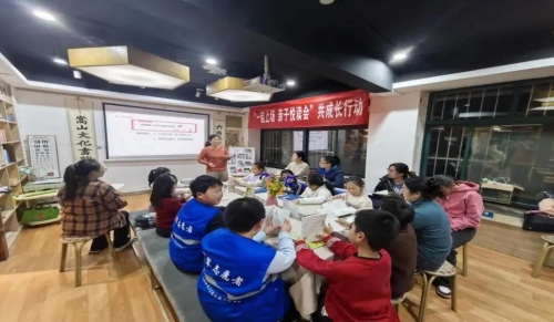 本次活动围绕“经典诵读、榜样宣讲、趣味互动”三大板块展开,搭建起一个融学习、体验与情感交流于一体的亲子成长平台。经典诵读环节,家长与孩子围坐共读《大学》篇章,“大学之道,在明明德”的朗朗诵读声浸润整个空间。宣讲环节依托“百人千场进万站”活动,通过生动感人的榜样故事,诠释“新时代好少年”的成长标准,悄然播撒家校社协同育人的种子。而亲子合作复原魔方的互动环节,更在手指翻转间传递默契与欢笑,悄然拉近彼此心灵的距离。