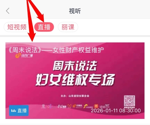 1.扫码下载齐鲁女性客户端,打开“视听”—“直播”栏目收看