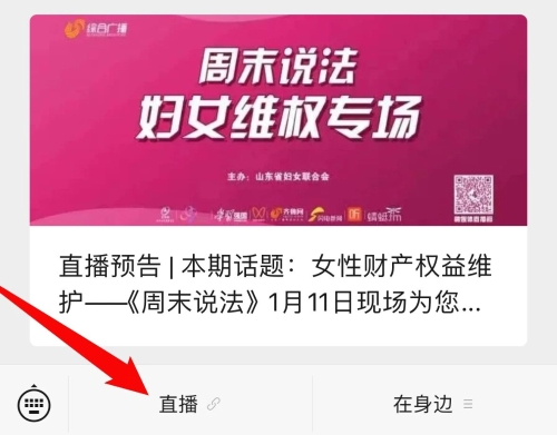 2.扫码关注齐鲁女性微信(ID:qilunvxing),点击菜单栏【直播】进入直播页面