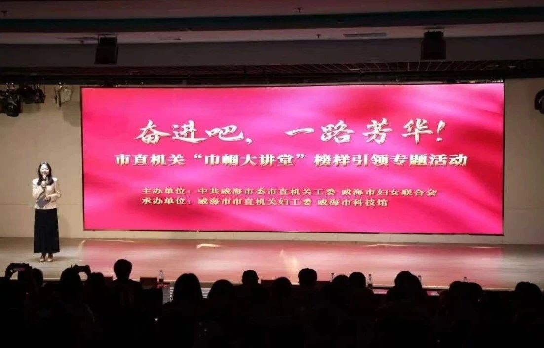 为生动展现威海市直机关广大女干部在服务高质量发展、推动精致城市建设中的卓越贡献与时代风采,3月18日,由市委市直机关工委、市妇联联合举办的“奋进吧,一路芳华!”市直机关“巾帼大讲堂”榜样引领专题活动在市科技馆举行。市直机关各单位妇委会主任、女干部职工代表等200余人参加。
