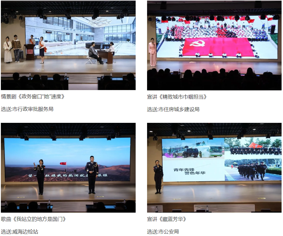活动围绕“精致城市·幸福威海”建设主线,分“回望·来时路”“展现·她力量”“助力·新征程”三个篇章,来自市检察院、市公安局、市民政局、市生态环境局、市住房城乡建设局、市卫生健康委、市行政审批服务局等10个部门单位的分享者,以生动的语言、鲜活的事例和饱满的热情,通过宣讲、情景剧、纪实短片、歌曲等形式,现场展示市直机关女干部在爱岗敬业、改革创新、城市发展等方面的奋斗故事和精彩瞬间,引起现场观众的强烈共鸣。大家纷纷表示,要以先进典型为榜样,汲取奋进力量,立足本职岗位,在服务全市高质量发展大局中展现巾帼担当。