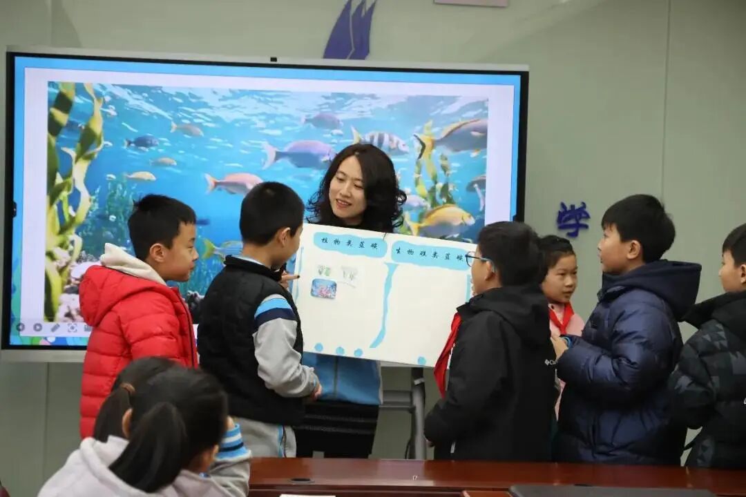 活动伊始,志愿者结合惊蛰“万物复苏、水生万物”的节气特点,用生动易懂的语言,将节气文化与海洋环保巧妙结合,引导小卫士们走进蓝碳的世界。搭配威海本地蓝碳资源简易地图,志愿者用提问互动的方式带领小卫士们认识家乡的蓝碳宝藏。
